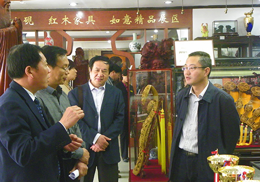 庆安、曲阜市文化局局长孔祥金的陪同下来金龙阁艺术品公司视察工作。